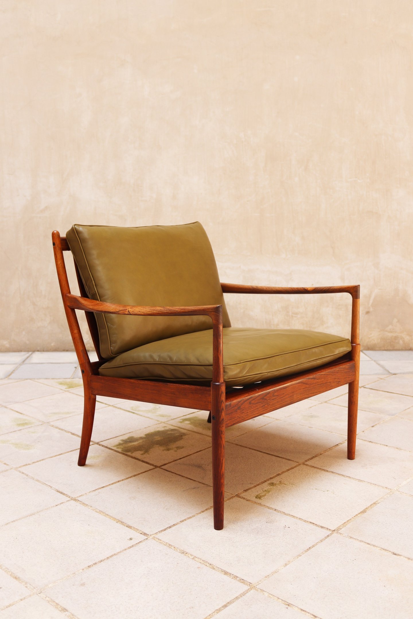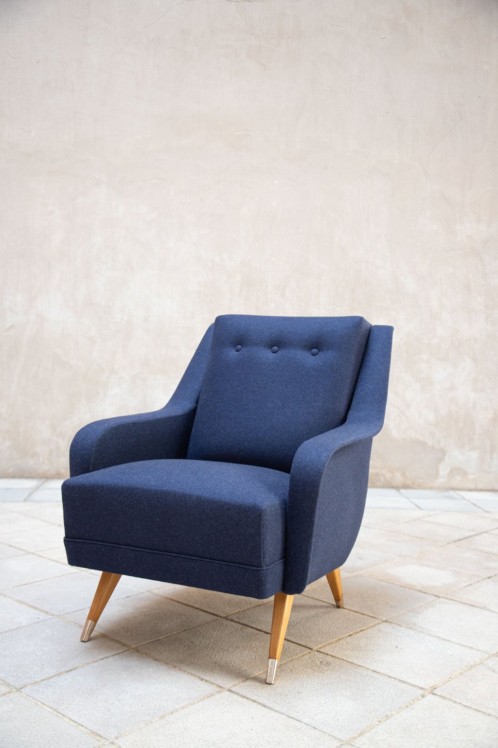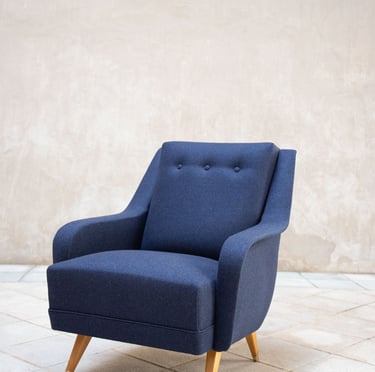 ”Très belle rénovation d'un fauteuil années 70. Choix de très beaux tissus de qualité, travail minutieux et impeccable.”